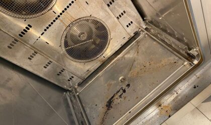 – sistemul de ventilație era necurarat, prezentând masive depuneri de praf și grăsime