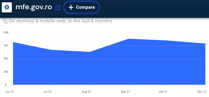 Aproape 80.000 de vizite a primit site-ul oficial al Ministerului Investițiilor și Proiectelor Europene (mfe.gov.ro), în luna noiembrie, de pe desktop și dispozitive mobile, conform Similar Web.