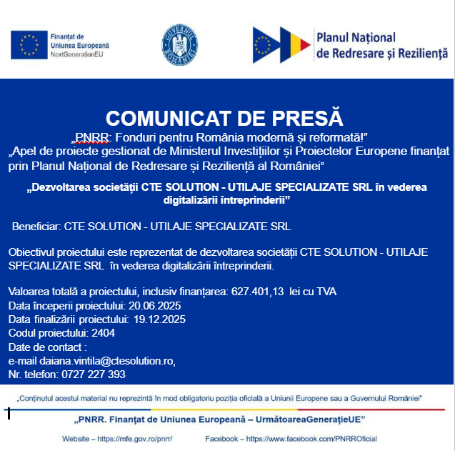 Beneficiar: CTE SOLUTION – UTILAJE SPECIALIZATE SRL