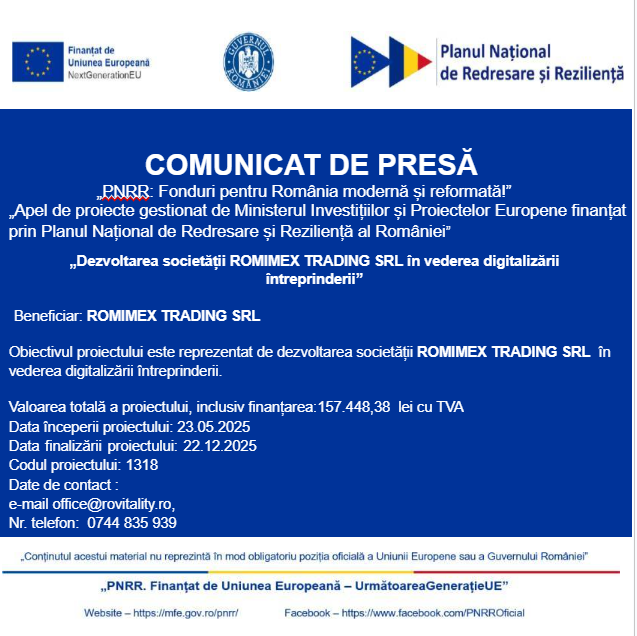 „Dezvoltarea societății ROMIMEX TRADING SRL în vederea digitalizării întreprinderii”