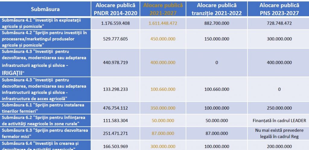 “În această jumătate de final de an 2021 s-au lansat deja programe și măsuri în valoare 3,2 miliarde de euro, 3 miliarde sunt plăți directe, ceea ce înseamnă că pentru 2023-2027 au rămas 15,9 miliarde de euro.