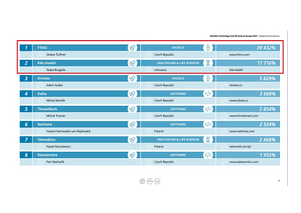 Câștigătorul categoriei principale a clasamentului, care recunoaște companiile de tehnologie cu cea mai rapidă creștere în Europa Centrală  care s-au înființat de cel puțin patru ani, este FTMO, un fintech din Republica Cehă, cu o creștere a veniturilor de 39.432%.