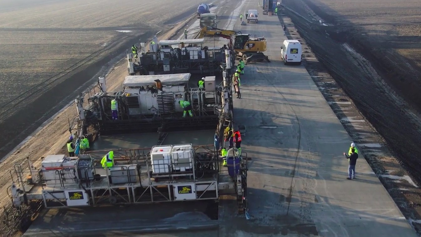 „Cu ajutorul lor, se toarnă până la 1.300 de mc de beton pe zi. Până acum s-au turnat 13.500, dintre cei aproximativ 33.700 de mc ai drumului”, precizează secretarul de stat.