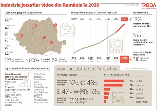 Datele sunt oferite de studiul anual realizat de RGDA (Asociația Dezvoltatorilor de Jocuri Video din România).gaming