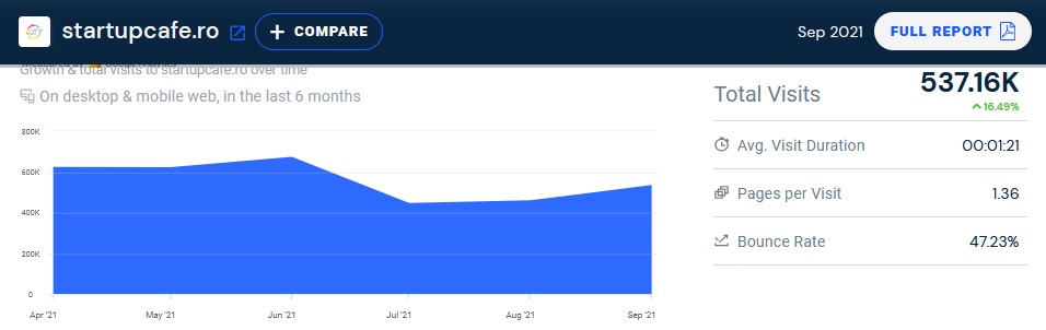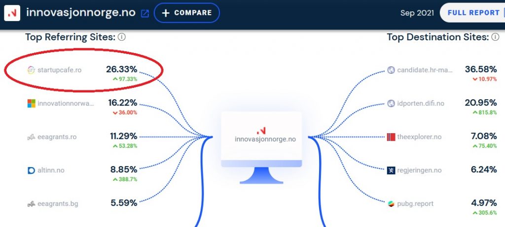 Și aici, tot StartupCafe.ro este pe primul loc în topul site-urilor de referință care au trimis vizitatori la portalul innovasjonnorge.no. Practic, cititorii StartupCafe.ro au generat 26,33% din traficul refferals de pe dispozitive desktop, obținut de site-ul oficial Innovation Norway în luna septembrie.