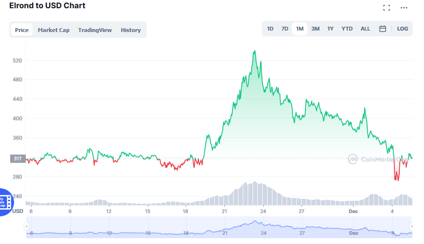 La fel ca marea majoritate a criptomonedelor, și eGold, crypto-activul românilor de la Elrond, a picat sîmbătă dimineața, ajungând la un minim al ultimei luni, de 225 de dolari și 61 de cenți. Ulterior, și EGLD a revenit pe creștere, tranzacționându-se la 315 dolari, la ora publicării acestei știri. În numai 24 de ore, diferența între prețul minim și cel maxim atins a fost și de 54% (raportat la minim), la eGold, sâmbătă.