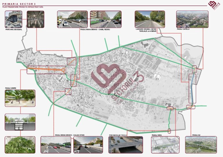 La începutul anului, Primăria Sectorului 3, condusă de Robert Sorin Negoiță, a prezentat o hartă (foto jos) cu detalii privind construirea a șase pasaje. Astfel, pe lângă Pasajul Cățelu, este ilustrat proiectul gigant al pasajului de sub Bulevardul Unirii, cel de la intrarea Autostrăzii Soarelui (A2) în Capitală, un pasaj la Ikea și alte două două pasaje rutiere subterane pentru fluidizarea traficului pe Șoseaua Mihai Bravu.