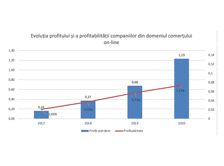 Profitabilitatea medie a domeniului e-commerce a depășit 7,3%, dublul anului 2018 (3,7%) și în creștere de la 5,1%, cât era în anul 2019. În contextul dat, creșterea profitabilității indică o creștere a profitului mai accelerată decât cea a veniturilor.