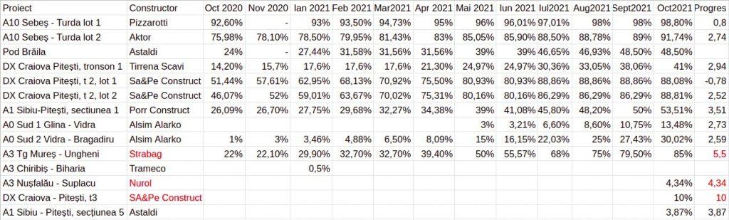 Rămâne de văzut în ce ritm vor continua lucrările și câte din tronsoanele anunțate pentru inaugurare în 2021 vor fi deschise circulației.
