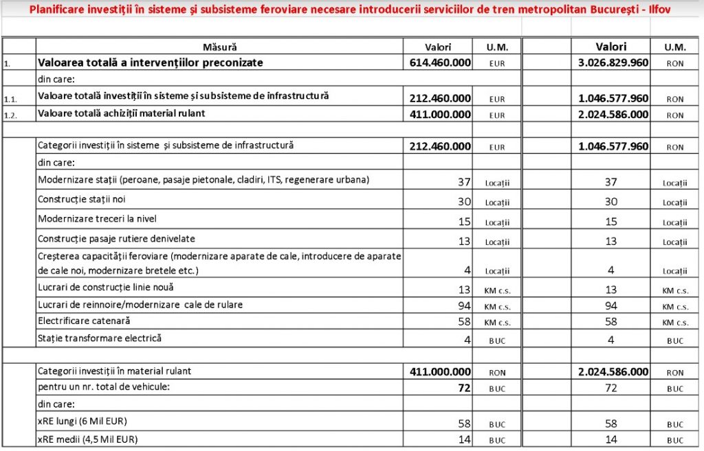 Proiectul trenului metropolitan București – Ilfov prevede mai nou achiziția a 72 de trenuri, față de 50 câte anunța inițial primarul Capitalei Nicușor Dan. Valoarea proiectului ce urmează să fie implementat în trei faze până în 2050 se ridică acum la 614 milioane de euro, din care 411 milioane de euro reprezintă investiția estimată în materialul rulant nou, potrivit unei prezentări a consilierului TPBI Ștefan Roșeanu.